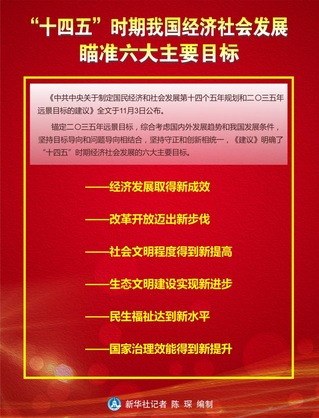 黨的十九屆五中全會根據(jù)第一階段“基本實現(xiàn)社會主義現(xiàn)代化”的任務(wù),明確提出了2035年遠景目標(biāo)和“十四五”發(fā)展目標(biāo)。盡管這些規(guī)劃目標(biāo)以定性描述為主,沒有明確量化目標(biāo),但也十分具體,蘊含了定量要求,在起草文件過程中也做了大量測算,心中是有數(shù)的。