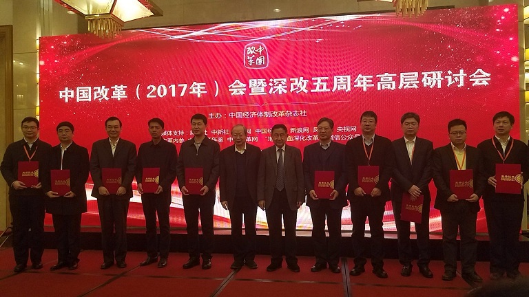 2018年1月13日上午9時,由中國經濟體制改革雜志社主辦的“貫徹黨的十九大會議精神 推進全面深化改革取得更大成功——中國改革(2017)年會暨深改五周年高層研討會”在北京西苑飯店隆重召開。研討會開幕式上,主辦單位揭曉了“2017中國改革年度案例單位”名單。