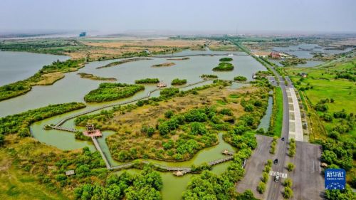 這是5月13日拍攝的山東黃河三角洲國(guó)家級(jí)自然保護(hù)區(qū)景色(無(wú)人機(jī)照片)。新華社記者 郭緒雷 攝