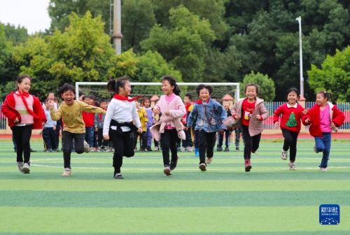 11月4日,在湖南省永州市新田縣雙碧小學(xué),孩子們?cè)谶\(yùn)動(dòng)場(chǎng)上做游戲。今年秋季學(xué)期開學(xué)以來(lái),各地積極落實(shí)“雙減”政策,利用課后服務(wù)時(shí)間開展內(nèi)容豐富、形式多樣的課外活動(dòng),促進(jìn)學(xué)生全面發(fā)展。新華社發(fā)(劉貴雄攝)