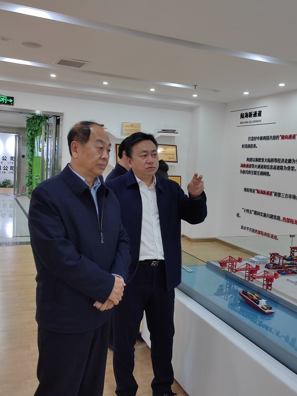 調(diào)研期間,趙艾和調(diào)研組一行還深入重慶國(guó)際物流樞紐展館、陸海新通道運(yùn)營(yíng)有限公司等實(shí)地了解情況,聽取意見。中新示范項(xiàng)目管理局副局長(zhǎng)唐衛(wèi)東等陪同調(diào)研。