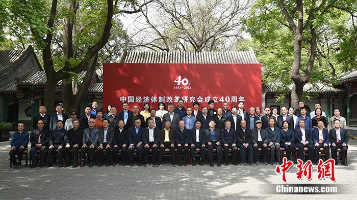 2023年4月19日,中國經濟體制改革研究會在北京召開成立四十周年座談會,圖為與會嘉賓合影。中新網記者 李駿 攝