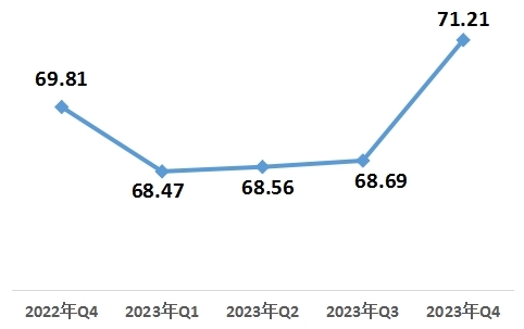 1月19日,中國經(jīng)濟體制改革研究會在京發(fā)布《2023年第四季度改革熱度第三方評估報告》。報告顯示,2023年第四季度改革熱度指數(shù)為71.21,比上一季度上升2.52,自2023年第二季度以來連續(xù)三個季度呈上升趨勢。