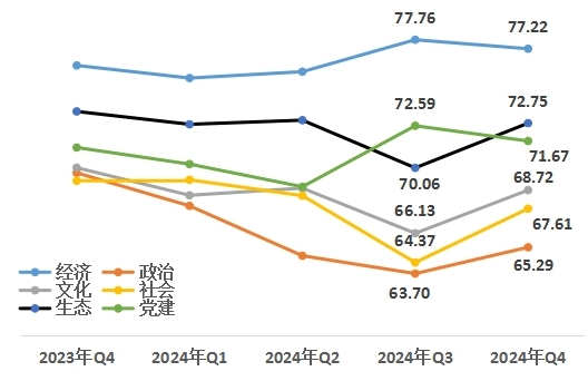 中國經(jīng)濟(jì)體制改革研究會“改革熱度指數(shù)”課題組認(rèn)為,面對當(dāng)前外部環(huán)境變化帶來的不利影響加深,我國經(jīng)濟(jì)運行仍面臨不少困難和挑戰(zhàn),但我國經(jīng)濟(jì)基礎(chǔ)穩(wěn)、優(yōu)勢多、韌性強(qiáng)、潛能大,長期向好的支撐條件和基本趨勢沒有變。從改革熱度指數(shù)看,政治、文化、社會、生態(tài)領(lǐng)域熱度值提升,經(jīng)濟(jì)、黨建領(lǐng)域熱度值和宣傳度熱度值略有下降,四季度改革熱度指數(shù)依然保持高位運行。2025年是貫徹黨的二十屆三中全會精神的重要一年,隨著各項改革逐步推進(jìn)、一攬子增量政策落地見效,必將為高質(zhì)量發(fā)展和推進(jìn)中國式現(xiàn)代化提供更有力的支撐。