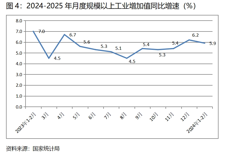 (一)工業(yè)增速由升轉(zhuǎn)落。1-2月份,規(guī)模以上工業(yè)增加值同比增長5.9%,比上年12月份增長6.2%回落了0.3個百分點,上年12月份比上年11月份回升了0.8個百分點。1-2月份工業(yè)增速出現(xiàn)回落,有上年同期高基數(shù)的因素,如按兩年平均增速計算,增速為6.4%,說明規(guī)模以上工業(yè)出現(xiàn)了積極的回升勢頭。值得關(guān)注的是,在全部規(guī)模以上工業(yè)增速回落的同時,規(guī)模以上制造業(yè)和私營企業(yè)增速卻保持了回升,1-2月份規(guī)模以上制造業(yè)同比增速比上年12月份回升0.5個百分點,私營企業(yè)回升1.4個百分點。