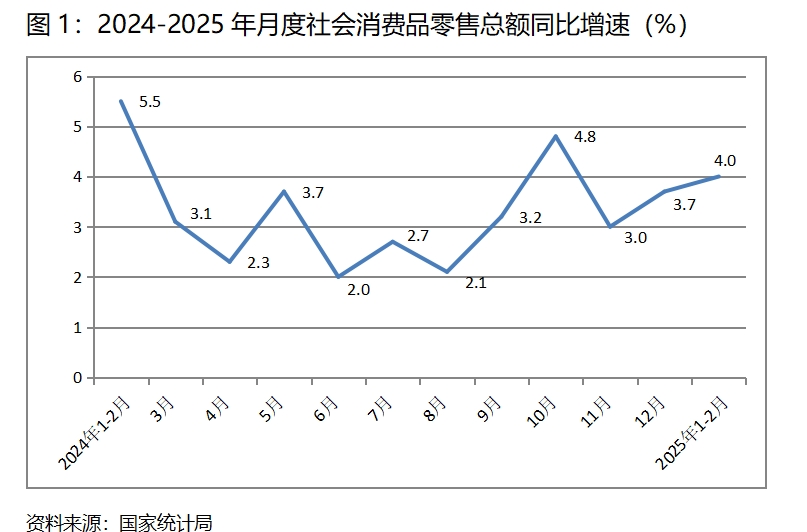 (一)零售增速繼續(xù)回升。1-2月份,社會消費品零售總額同比增長4.0%,比上年12月份增長3.7%回升了0.3個百分點,上年12月份比上年11月份增長3.0%回升了0.7個百分點。數(shù)據(jù)顯示,社會消費品零售總額保持了持續(xù)回升的勢頭,這是上年以來采取的以舊換新等系列促進(jìn)消費政策措施的結(jié)果,特別需要指出的是,這一增速是在上年同期基數(shù)較高基礎(chǔ)上的回升,更加說明消費增長的動力在增強(qiáng)。