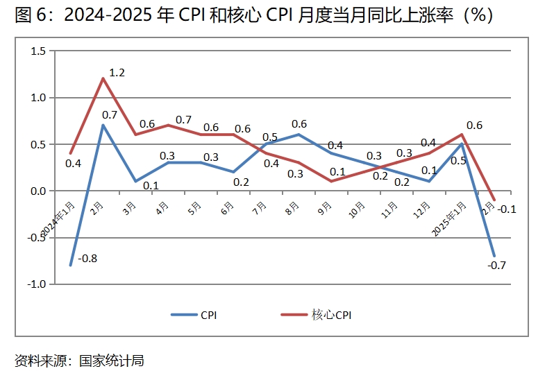 (四)CPI由上漲轉(zhuǎn)為下降。2月份,CPI同比下降0.7%,而1月份上漲了0.5%, CPI出現(xiàn)了由上漲轉(zhuǎn)為下降,有今年春節(jié)與上年春節(jié)錯月因素的影響。其中食品價格下降3.3%,而上月上漲0.4%;非食品價格下降0.1%,而上月上漲0.5%。2月份,核心CPI同比下降0.1%,而1月份上漲0.6%。這其中盡管有春節(jié)錯月因素的影響,但CPI下降特別是核心CPI首次出現(xiàn)的下降,還是說明擴(kuò)大需求還需要進(jìn)一步加大力度。