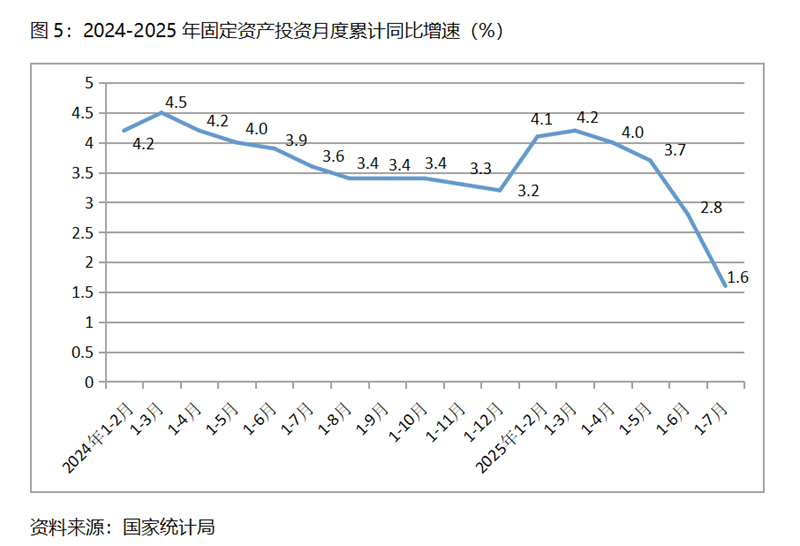 (三)投資增速持續(xù)回落。1-7月份,固定資產(chǎn)投資同比增長1.6%,比1-6月份增長2.8%回落了1.2個百分點,1-6月份增速比1-5月份增長3.7%回落了0.9個百分點,增速呈現(xiàn)出持續(xù)的回落。1-7月份國有控股投資同比增速比1-6月份回落1.5個百分點;民間投資降幅擴大了0.9個百分點。三次產(chǎn)業(yè)投資中,第一產(chǎn)業(yè)投資增速回落0.9個百分點,第二產(chǎn)業(yè)投資增速回落1.3個百分點,第三產(chǎn)業(yè)投資降幅擴大1.2 百分點。固定資產(chǎn)投資增速較大幅度的持續(xù)回落,需引起宏觀調控的高度重視。
