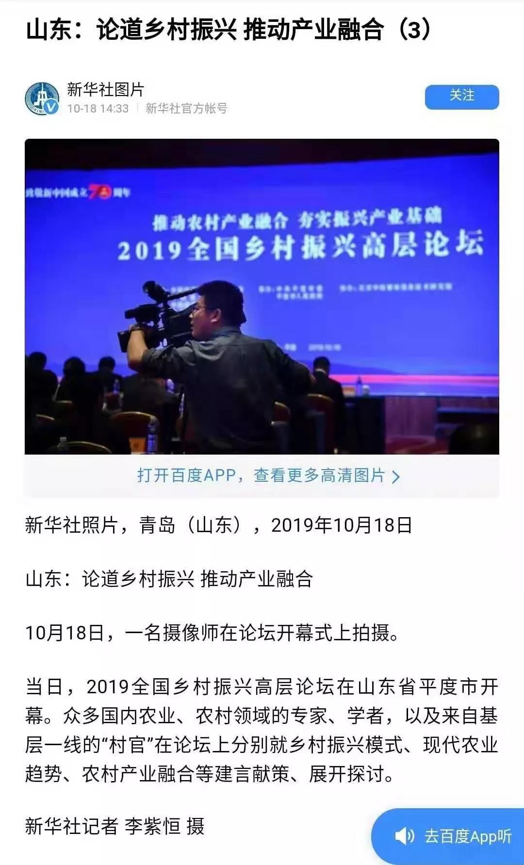 這場(chǎng)在平度舉行的國(guó)家級(jí)高層論壇受到各級(jí)新聞媒體聚焦關(guān)注,中央廣播電視總臺(tái)、人民日?qǐng)?bào)、新華社、經(jīng)濟(jì)日?qǐng)?bào)、農(nóng)民日?qǐng)?bào)、中國(guó)經(jīng)濟(jì)時(shí)報(bào)、山東廣播電視臺(tái)、大眾日?qǐng)?bào)、青島廣播電視臺(tái)、青島日?qǐng)?bào)等20余家媒體記者到現(xiàn)場(chǎng)采訪報(bào)道。10月18日上午,青島廣播電視臺(tái)藍(lán)睛客戶端現(xiàn)場(chǎng)直播論壇盛況,在線觀看已突破7萬(wàn)人次。目前,新華社、人民網(wǎng)、鳳凰網(wǎng)、青島廣播電視臺(tái)、青島日?qǐng)?bào)、齊魯晚報(bào)、青島早報(bào)、青島晚報(bào)、半島都市報(bào)、商周刊、大眾網(wǎng)、中國(guó)山東網(wǎng)、青島新聞網(wǎng)等10余家媒體第一時(shí)間已刊發(fā)相關(guān)報(bào)道。
