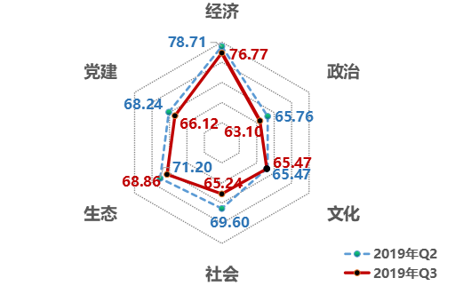 1、從領(lǐng)域來看,文化領(lǐng)域改革熱度值保持穩(wěn)定,并首次超過社會(huì)領(lǐng)域。第三季度,經(jīng)濟(jì)領(lǐng)域得分76.77,生態(tài)領(lǐng)域得分68.86,黨建領(lǐng)域得分66.12,文化領(lǐng)域得分65.47,社會(huì)領(lǐng)域得分65.24,政治領(lǐng)域得分63.10。