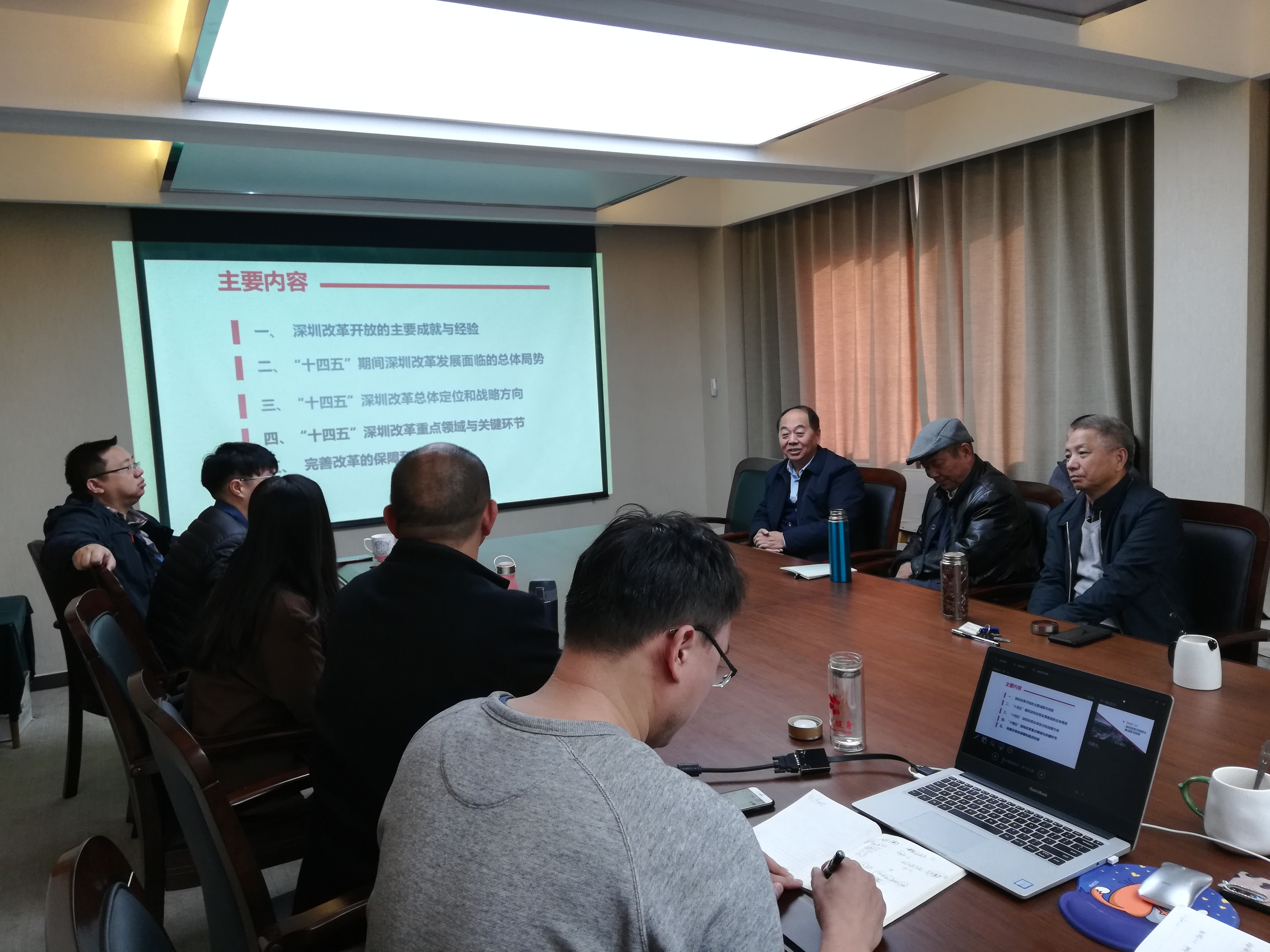 8日上午,王招展示匯報(bào)了《“十四五”時(shí)期深圳全面深化改革實(shí)施路徑研究》課題的研究背景、內(nèi)容、研究思路和研究方法。趙艾副會(huì)長提出,要加強(qiáng)課題內(nèi)容與十九屆四中全會(huì)精神的銜接,圍繞中央最新重大決策部署進(jìn)一步完善課題研究;孔涇源副會(huì)長提出要加強(qiáng)針對(duì)深圳的問題意識(shí),在改革目標(biāo)上要強(qiáng)調(diào)問題導(dǎo)向和目標(biāo)導(dǎo)向相結(jié)合,并對(duì)深圳發(fā)展改革中存在的具體問題和應(yīng)該重視的重點(diǎn)領(lǐng)域改革議題提出了具體意見;石小敏副會(huì)長認(rèn)為,深圳城中村的存在給中低收入者提供了必要的居住場(chǎng)所,應(yīng)當(dāng)尊重城中村的存在,要建立更具包容性的改革共識(shí)。盛澤宇匯報(bào)了《山東省“十四五”深化制度創(chuàng)新研究》課題的基本情況和重點(diǎn)內(nèi)容??讜?huì)長在點(diǎn)評(píng)中指出,山東省存在區(qū)域發(fā)展差別大的問題,要加強(qiáng)區(qū)域協(xié)調(diào)發(fā)展,重點(diǎn)突破欠發(fā)達(dá)地區(qū)的發(fā)展瓶頸。石會(huì)長認(rèn)為,山東存在國有企業(yè)份額過大的問題,下一步要深化國有企業(yè)改革。